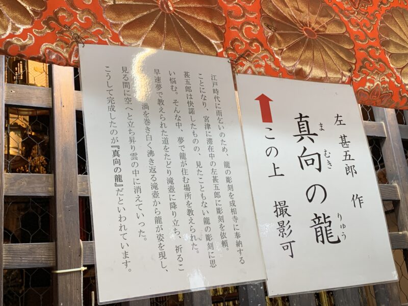 左甚五郎 作の龍が、展示されています。 あ!目があった。良いことありそうです。微笑んでいるし・・・。