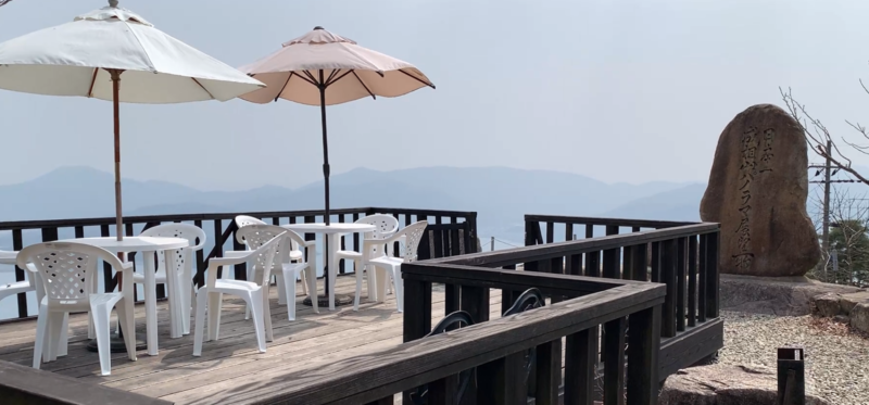 前にもましての急坂を登りきって、展望台へ到着しました。お茶も飲めるようです。以前は無かったなぁ。